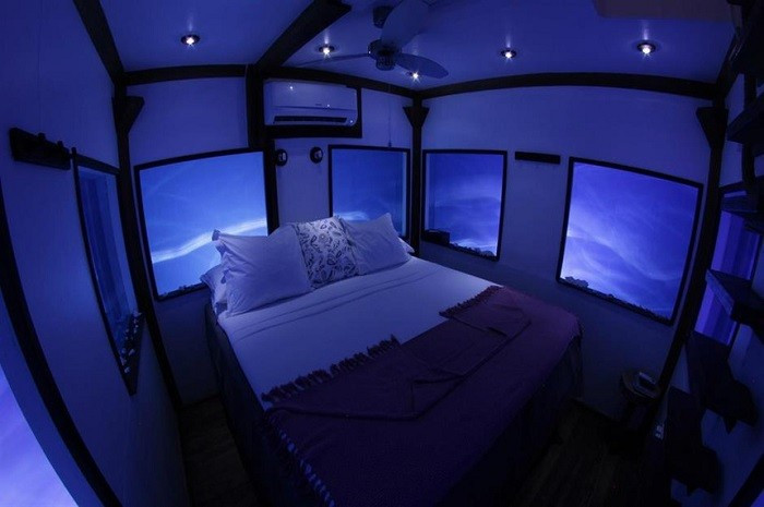 Manta Resort, Tanzania: Nằm trong khu bảo tồn sinh thái là nơi có nhiều sinh vật quý hiếm, Manta Resort cung cấp cho du khách trải nghiệm lưu trú độc đáo nơi mà bạn sẽ được đưa đến phòng dưới nước bằng thuyền. Mỗi căn phòng đều được bố trí ánh đèn đẹp mắt, sáng tạo sự thu hút cho các sinh vật biển vào ban đêm, mang đến cho bạn những giây phút huyền bí và ấn tượng.