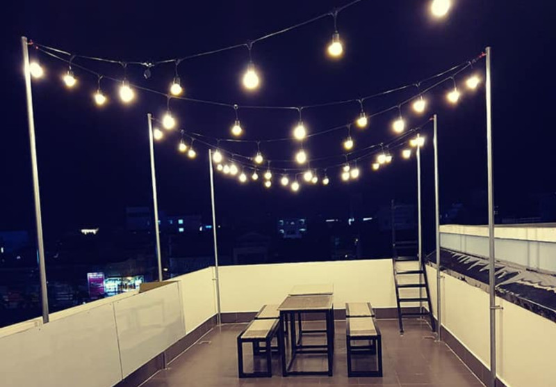 Sân thượng tại 54 Homestay Cần Thơ là không gian lý tưởng để tổ chức tiệc BBQ cùng gia đình, bạn bè. Với ánh đèn lung linh, không gian ngoài trời sẽ làm cho buổi tiệc của bạn trở nên thêm phần ấn tượng.