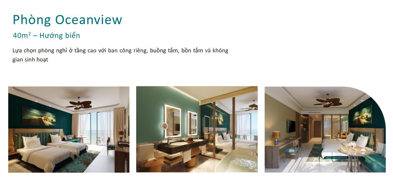 Với phong cách thiết kế hiện đại cùng trang thiết bị tiện nghi, Phòng Ocean View sẽ đem đến cho bạn những trải nghiệm đáng nhớ trong kỳ nghỉ của mình, nơi bạn có thể thư giãn và thưởng thức vẻ đẹp của đại dương.