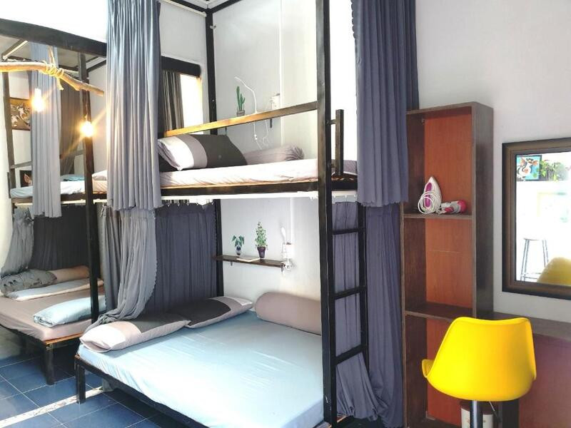 Phòng dorm tại Art Homestay được trang bị giường tầng ấm cúng, với rèm che riêng tư. Đây là lựa chọn lý tưởng cho những nhóm bạn hoặc gia đình muốn tận hưởng trải nghiệm nghỉ dưỡng cùng nhau. Màu sắc hài hòa, ánh đèn ấm áp giúp tăng thêm không khí thân thiện.