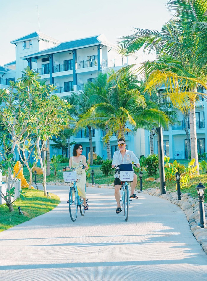 Không gian xung quanh resort được thiết kế với sân vườn rộng rãi, thoáng đãng, kết hợp với hệ thống tiện ích đa dạng như nhà hàng, quầy bar, spa, bể bơi và phòng tập gym, hứa hẹn mang đến cho du khách trải nghiệm lưu trú trọn vẹn nhất.
