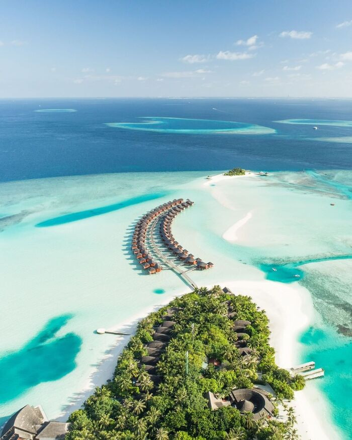 Toàn cảnh khu nghỉ dưỡng Anantara Dhigu Maldives nổi trên mặt biển.Toàn cảnh khu nghỉ dưỡng Anantara Dhigu Maldives vô cùng ấn tượng. Ảnh: @anantaradhigu