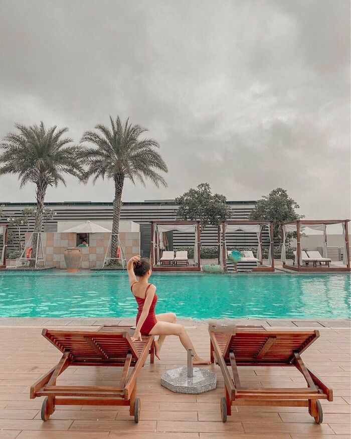 Khu vực bể bơi ngoài trời tại Vinpearl Hotel Cần Thơ là một trong những điểm nhấn thu hút du khách. Với diện tích 368 m2, bể bơi giúp du khách có những giây phút thư giãn, bơi lội dưới ánh nắng của miền Tây, bên cạnh làn nước trong xanh mát lạnh.