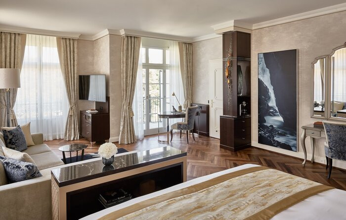 Palais Room tại Grand Resort Bad Ragaz - Spa Suites: Bao gồm Presidential Suite và Penthouse Suite với không gian xa hoa và tiện nghi đầy đủ, mang đến trải nghiệm sang trọng nhất.