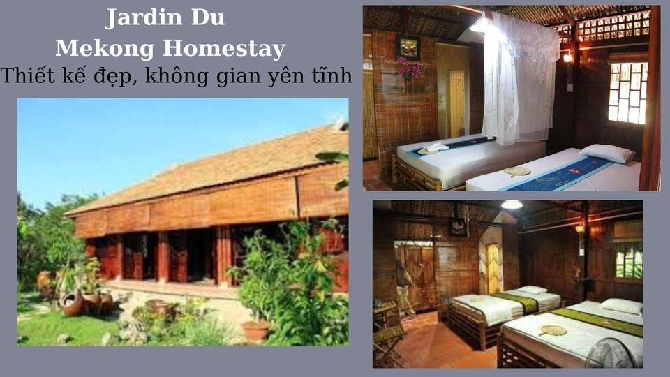 Jardin Du Mekong không chỉ là một homestay bình yên mà còn là một nơi tuyệt đẹp cho những ai yêu thích sự giản dị và gần gũi. Tọa lạc trong không gian xanh, homestay này mang đến cho du khách trải nghiệm sống hòa mình vào thiên nhiên.