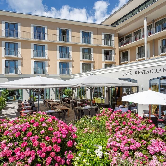 Khu vực bàn ăn ngoài trời tại Edelweiss Berchtesgaden