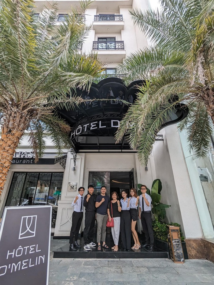 Hôtel D’Melin nổi bật với kiến trúc boutique cổ điển, mang lại cảm giác ấm áp và sang trọng. Mỗi phòng tại đây đều có cửa sổ nhìn ra biển, tạo không gian thoáng đãng cho du khách.