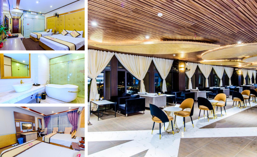 Nội thất phòng nghỉ được bố trí hài hòa, đầy đủ trang thiết bị hiện đại và sạch sẽ. Khách sạn còn có nhà hàng phục vụ các món ăn đặc sắc từ Á đến Âu, phù hợp với nhiều khẩu vị của du khách.