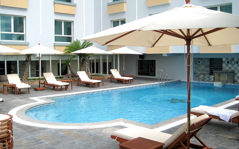 Khách sạn sở hữu một hồ bơi lớn ngoài trời, mang lại cho du khách không gian thư giãn tuyệt vời với làn nước trong xanh.