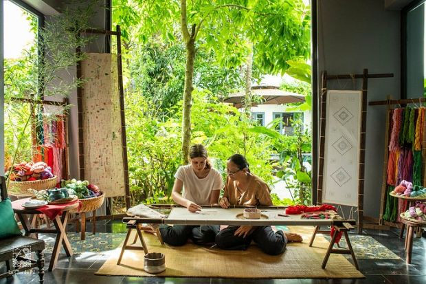 Du khách tham gia vào hoạt động thêu tại khách sạn (Nguồn ảnh: Sưu tầm)
