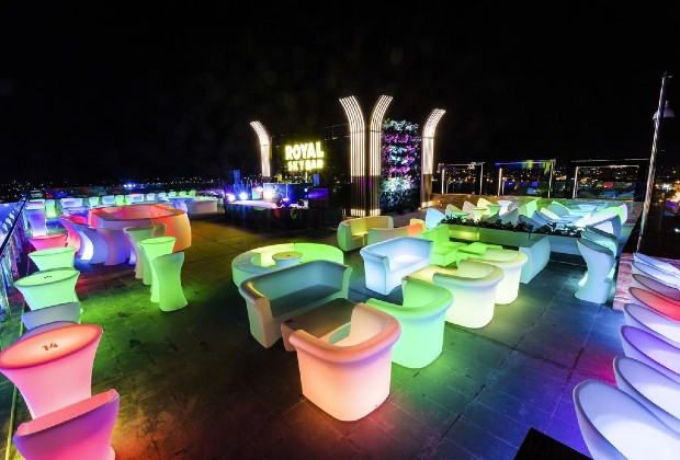 Quầy bar Sky Royal tại đây là điểm đến không thể bỏ qua, nơi bạn có thể thưởng thức đồ uống và ngắm nhìn thành phố lung linh về đêm.