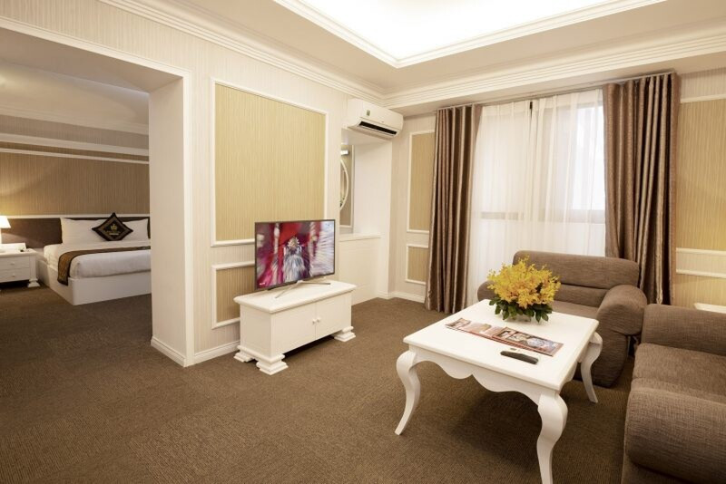 Phòng Junior Suite rộng rãi 50m², hấp dẫn nhiều du khách nhờ không gian thoáng đãng và tiện nghi đầy đủ.