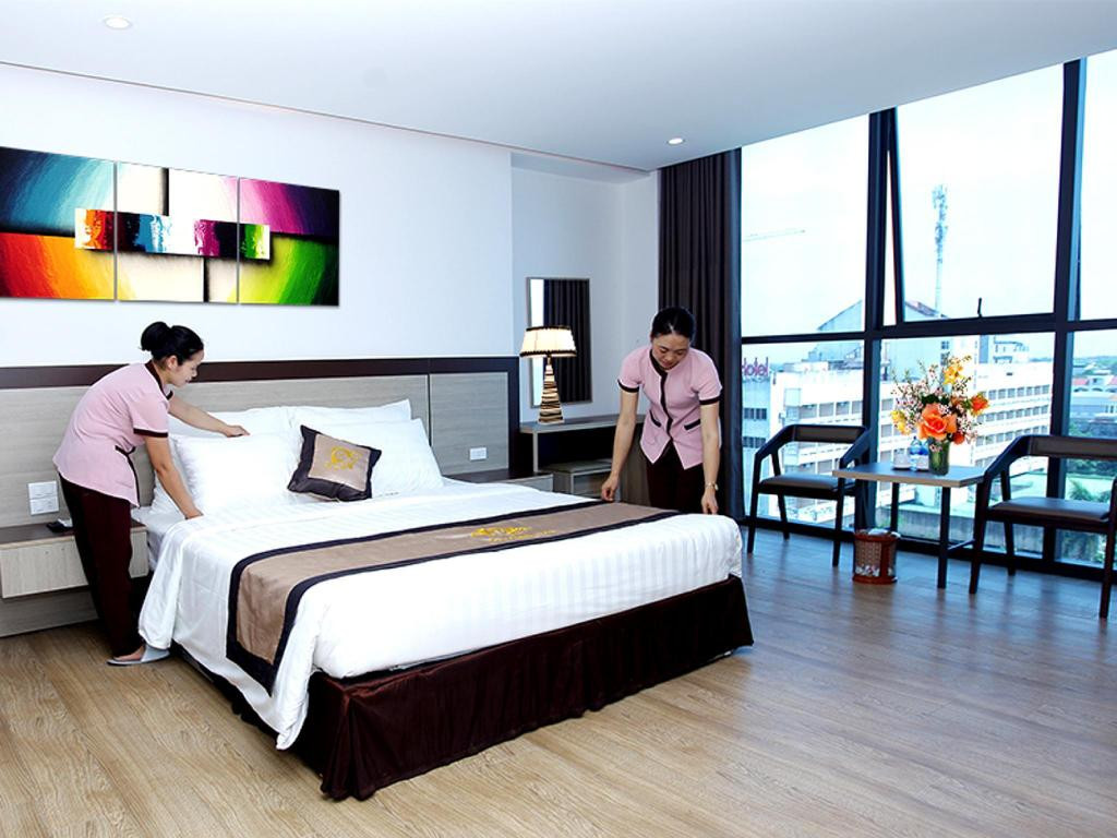 Phòng tiêu chuẩn tại khách sạn có diện tích 25m2, được trang bị đầy đủ tiện nghi hiện đại như TV, điều hòa, mini bar và giường đôi tạo cho du khách sự thoải mái và riêng tư.