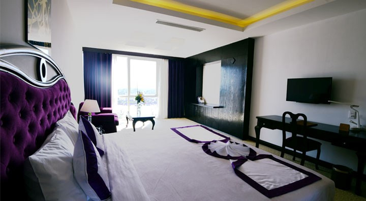 Phòng President Suite diện tích lên đến 105m2, gồm 02 phòng ngủ, 01 phòng khách và bếp, rất thích hợp cho gia đình hoặc nhóm bạn du lịch. Nội thất trong phòng được thiết kế tinh tế, tạo cảm giác sang trọng và thoải mái.