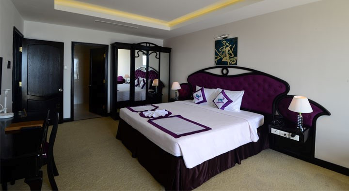 Phòng TTC Suite rộng rãi, có tầm nhìn hướng ra sông Hậu, với các tiện nghi hiện đại. Đây là sự lựa chọn lý tưởng cho những ai yêu thích không gian thoáng đãng và sang trọng.