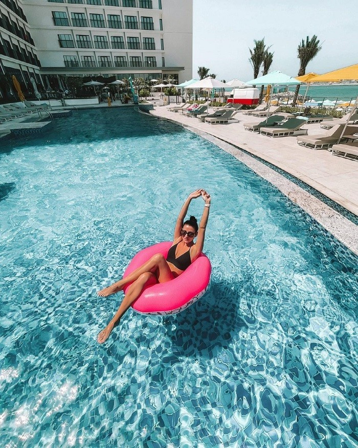 Một trong những điểm nhấn của khách sạn Rove chính là bể bơi gần biển, nơi du khách có thể thư giãn và ngắm nhìn vẻ đẹp lộng lẫy của Dubai. Đây không chỉ là nơi tuyệt vời để giải tỏa căng thẳng sau những giờ chơi game kịch tính, mà còn là một không gian thư giãn lý tưởng.