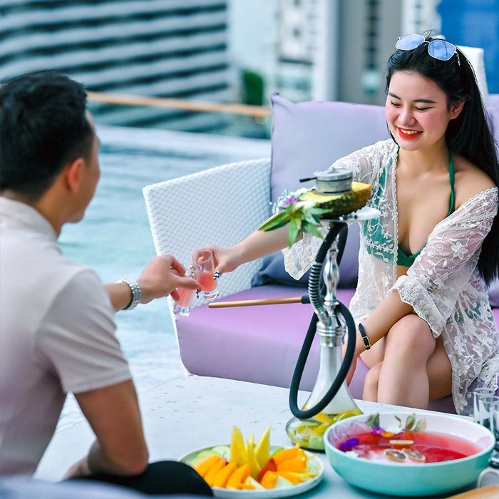 Bể bơi trên sân thượng với tầm nhìn toàn cảnh thành phố là nơi lý tưởng để bạn thư giãn và tận hưởng không khí trong lành.