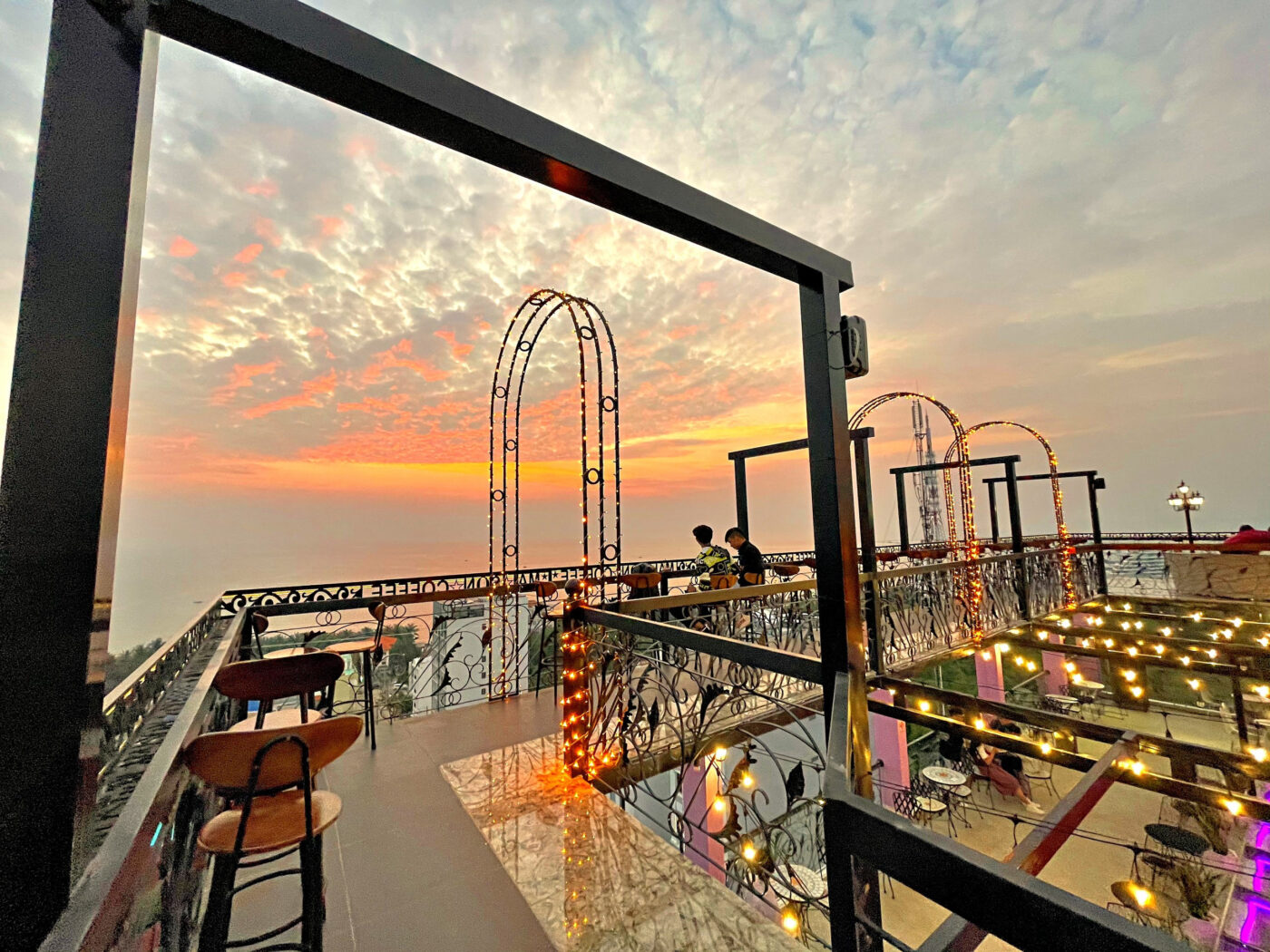 Sky Bar không chỉ thu hút bởi thực đơn đa dạng, mà còn là nơi lý tưởng để thưởng thức cảnh hoàng hôn thơ mộng trên biển.