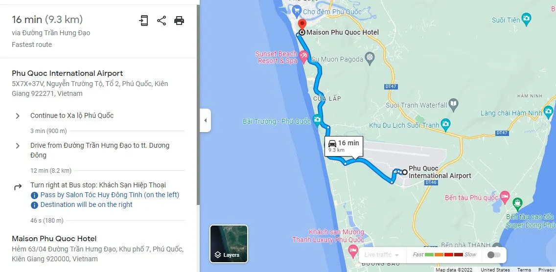 - Đi taxi hoặc limousine: Hành trình chỉ mất khoảng 15 phút thông qua tuyến đường Xa lộ Phú Quốc – Trần Hưng Đạo.