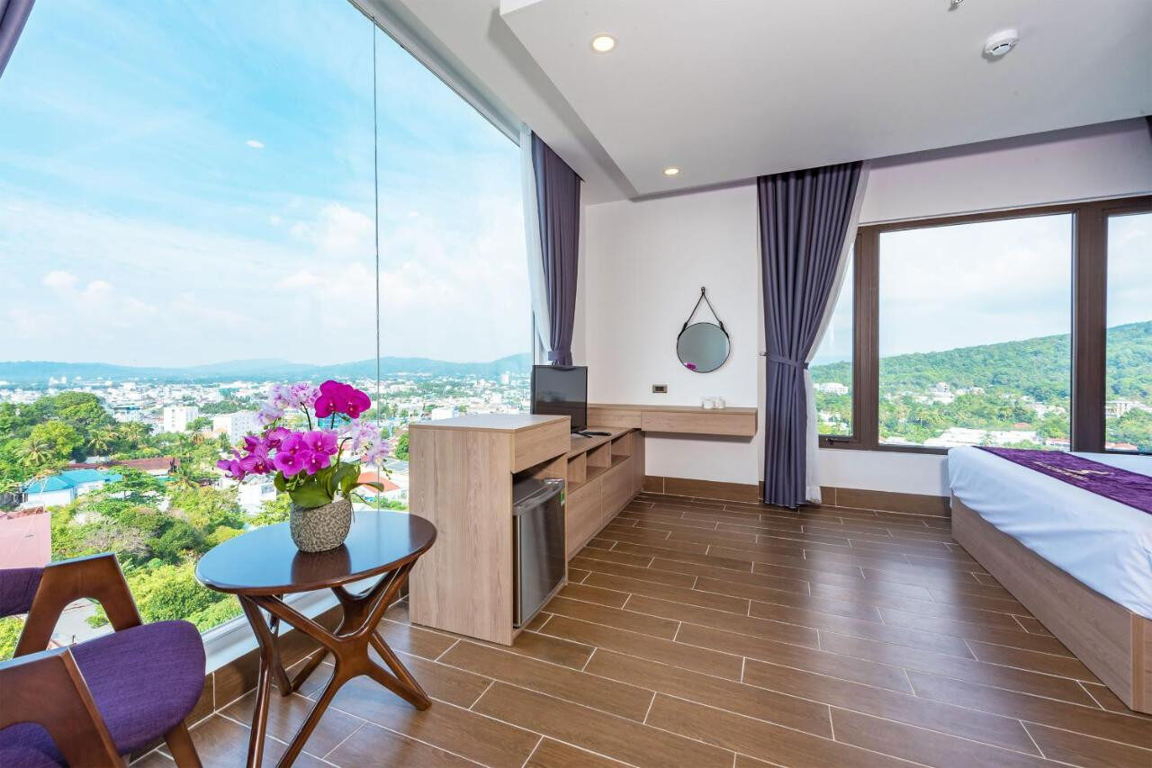 Nội thất tinh tế của phòng Deluxe nhìn ra thành phố tại Maison Hotel.