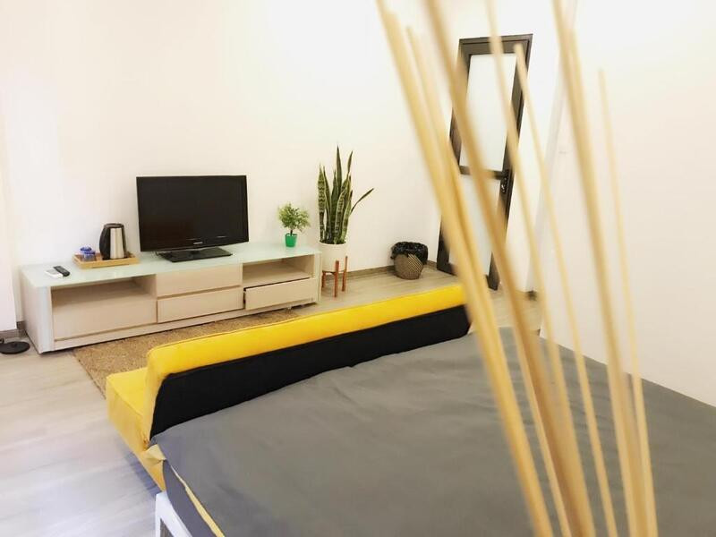 Căn hộ 1 phòng ngủ rộng khoảng 35m2, thích hợp cho 2 khách. Phòng được trang bị đầy đủ nội thất hiện đại như máy lạnh, tivi màn hình phẳng, giường đôi êm ái và không gian thoáng mát nhờ cửa sổ lớn.