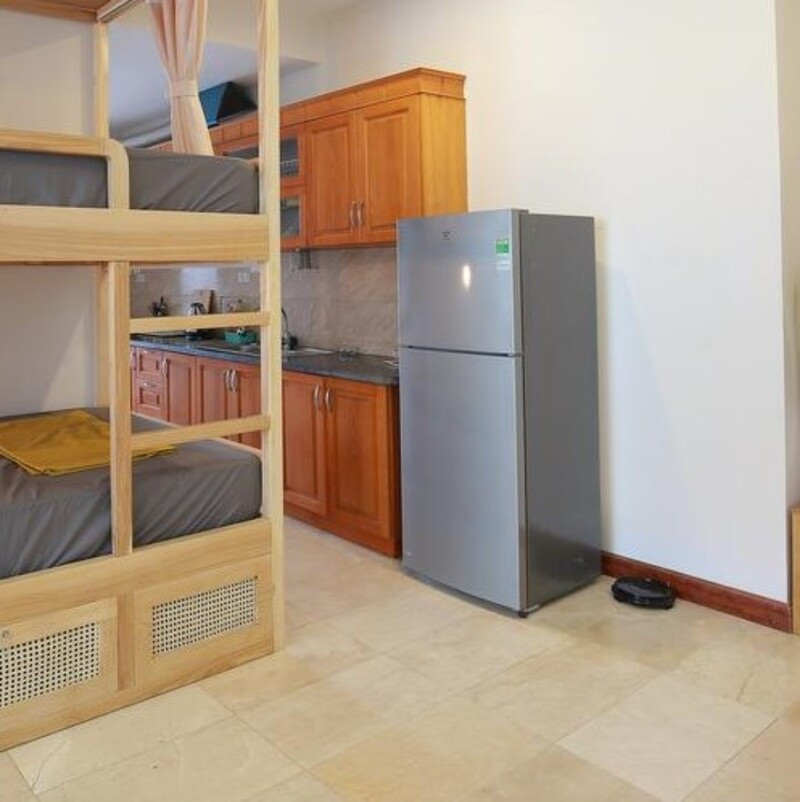 Khu bếp chung được trang bị đầy đủ các dụng cụ nấu ăn, giúp bạn có thể tự tay chuẩn bị những bữa ăn ngon miệng bên bạn bè và gia đình.