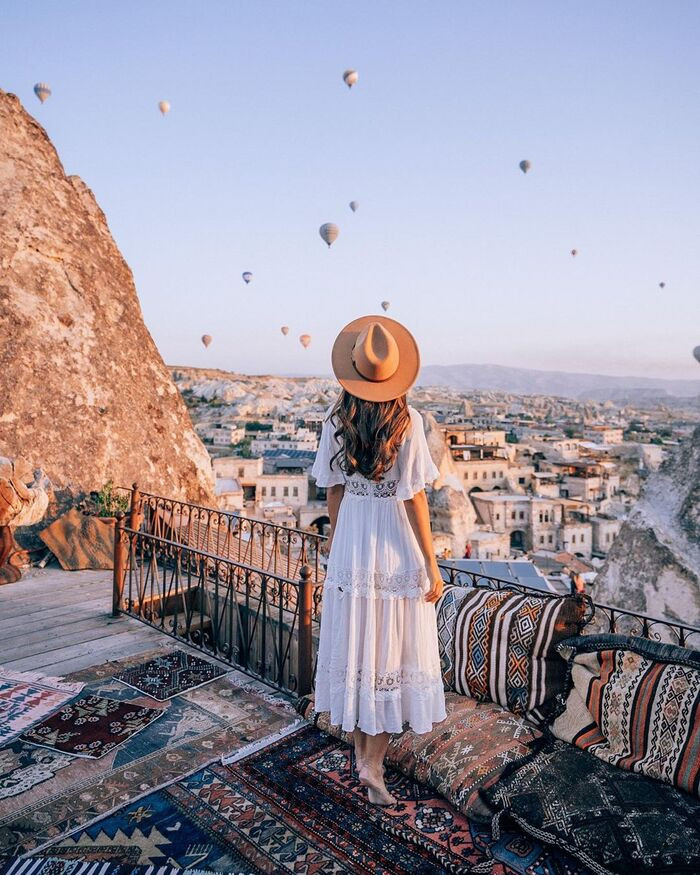 Từ đây, du khách có thể ngắm nhìn khung cảnh ấn tượng của thị trấn Cappadocia với những ngọn núi đá hùng vĩ và hàng trăm khinh khí cầu nhiều màu sắc bay lơ lửng trên bầu trời. Đây là những khoảnh khắc không thể quên khi du khách được chứng kiến toàn cảnh thiên nhiên tuyệt đẹp từ một góc cao.