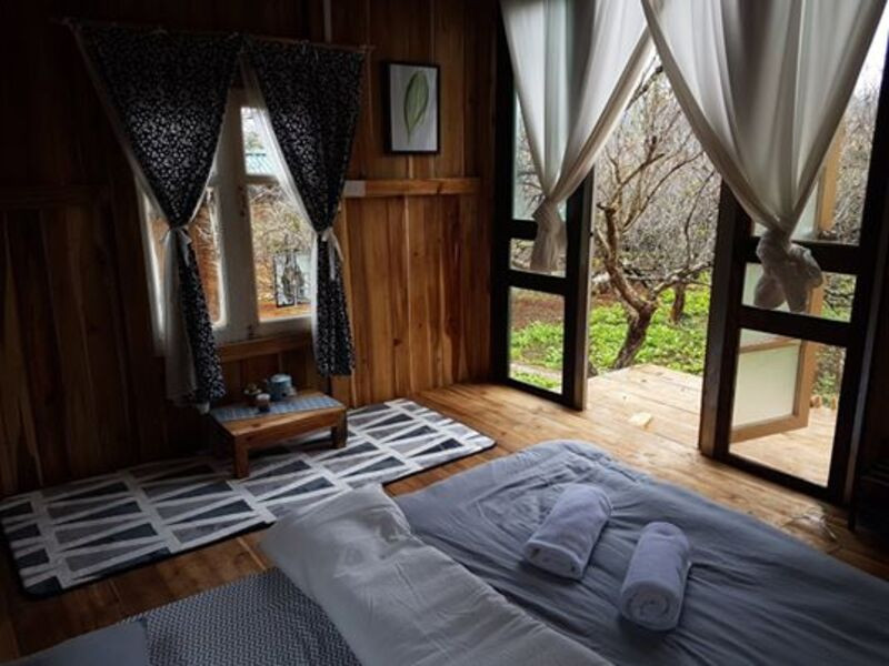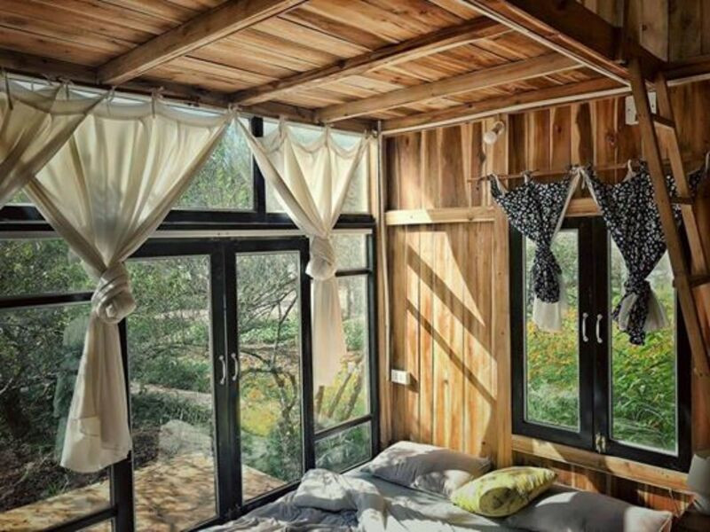 - Phòng số 1: Có sức chứa cho 4 người, thiết kế 2 tầng với view nhìn ra vườn cây xanh mát.