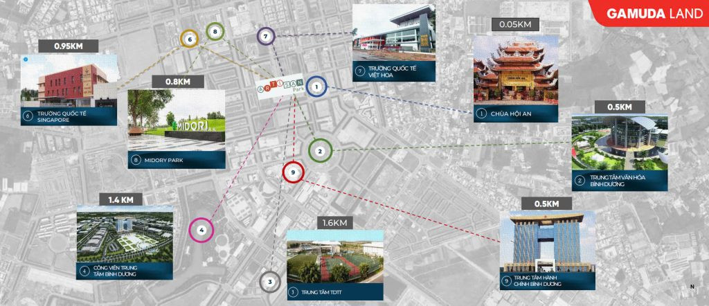 Artisan Park nằm tại Lô 1, G9, K5 ở Thành phố mới Bình Dương, nơi kết nối các khu công nghiệp lớn như VSIP II và Đồng An II. Vị trí chiến lược không chỉ thu hút đông đảo khách hàng mà còn mang đến một không gian sống lý tưởng gần các tiện ích xã hội phát triển như trường học, trung tâm thương mại, và các dịch vụ giải trí.