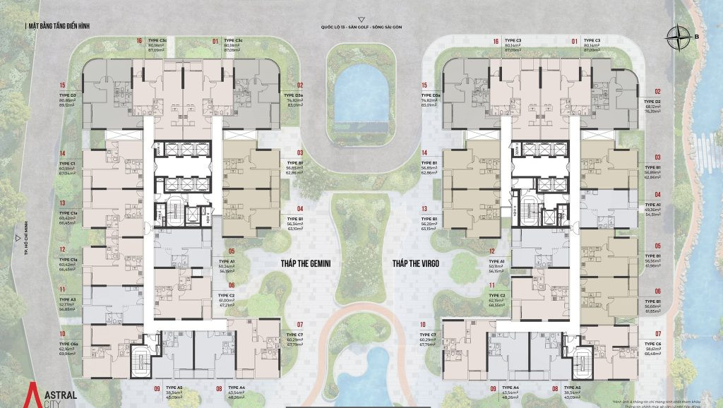Dự án Astral City được chia thành hai phân khu chính (Zone A và Zone B), với 8 block cao 40 tầng, mang đến những thiết kế hiện đại và sang trọng.