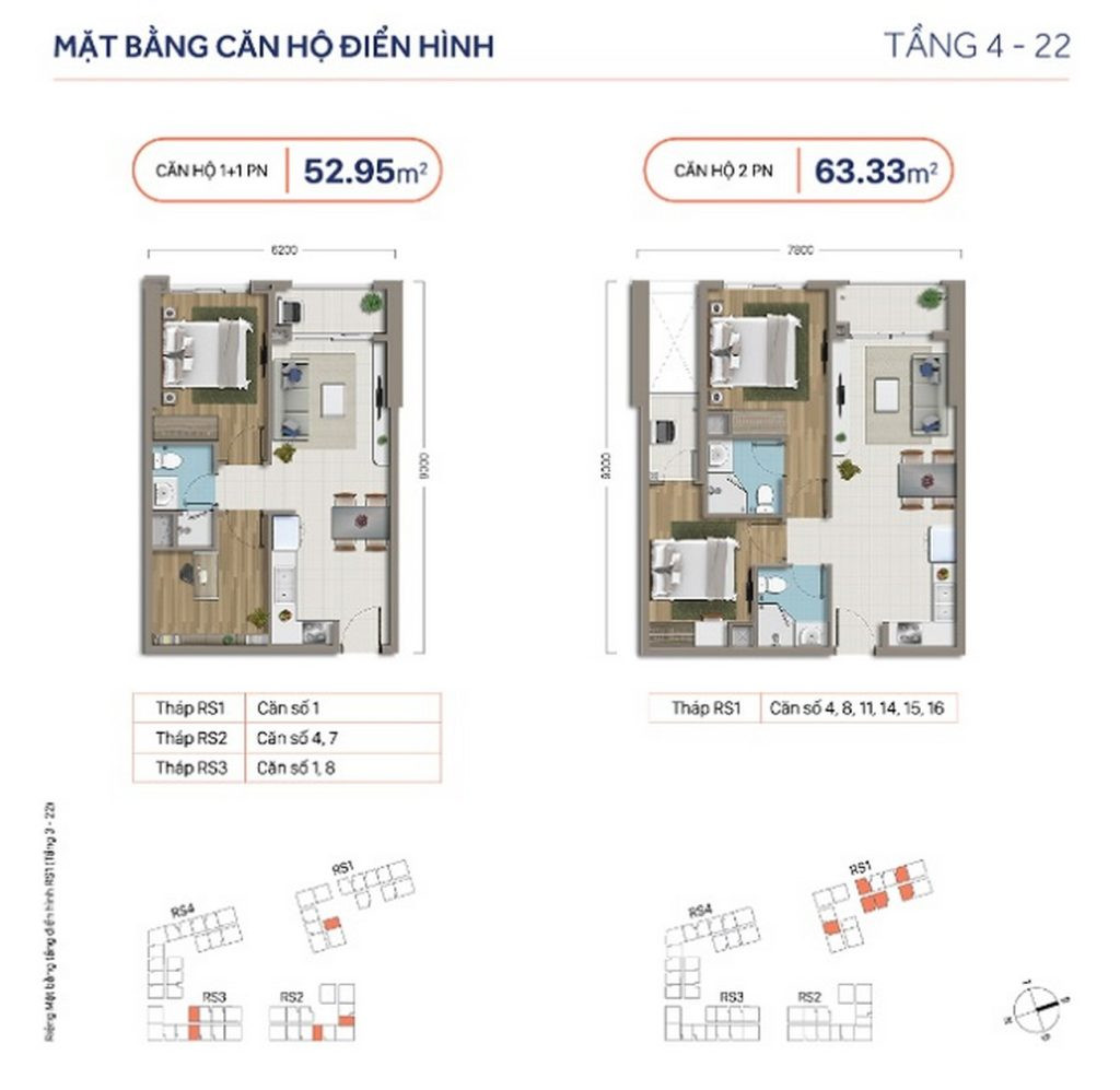 Mặt bằng căn hộ điển hình 52.95m2 tới 63.33m2 RichStar Tân Phú