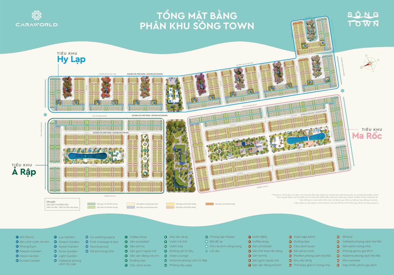 Mặt bằng dự án được chia thành nhiều phân khu khác nhau, mỗi phân khu mang một phong cách thiết kế riêng, đảm bảo sự phong phú và đa dạng cho cư dân.