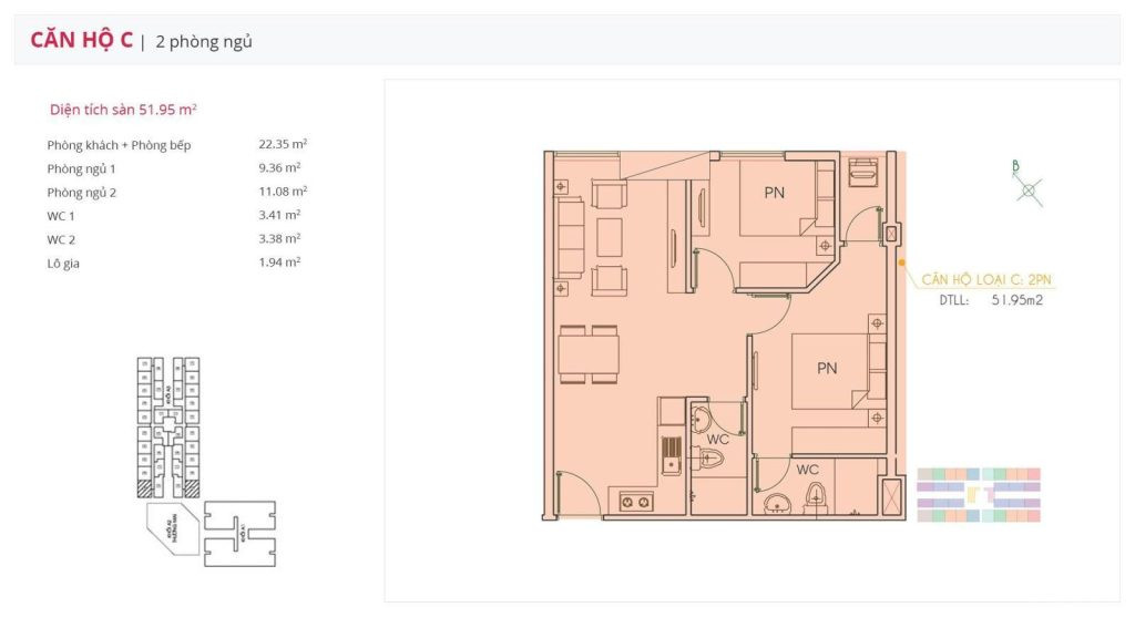 | Diện tích phổ biến | 1 – 3 phòng ngủ (42 m² – 71 m²) |