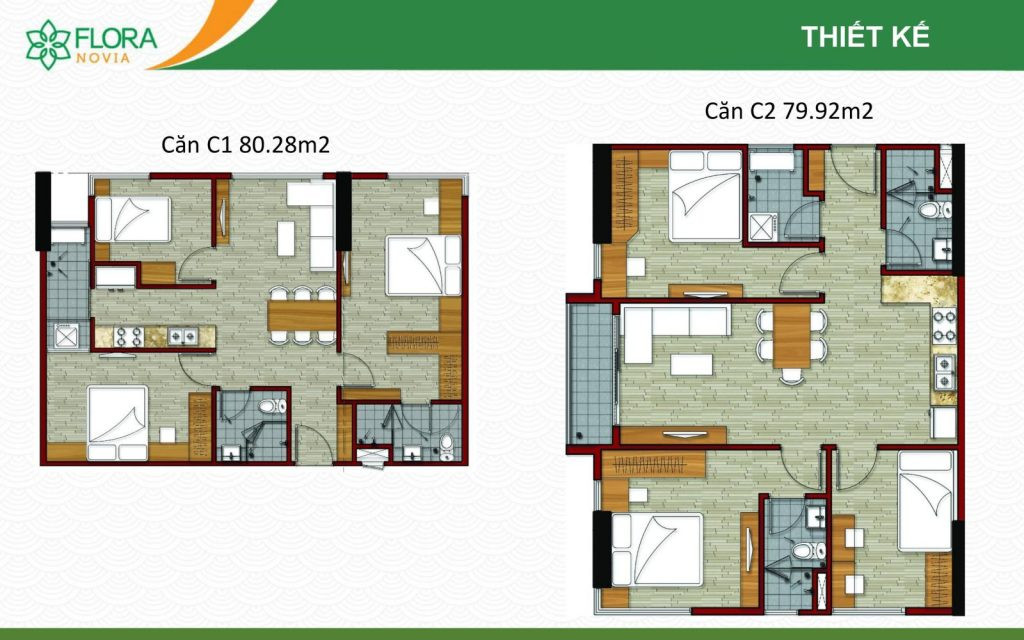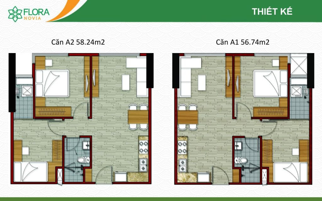 Được thiết kế theo phong cách Nhật Bản, các căn hộ tại Flora Novia có diện tích từ 56 – 99 m² với 2 – 3 phòng ngủ. Bên cạnh sự tiện nghi, thiết kế tinh tế và tối giản tạo nên không gian sống thân thiện và thoải mái cho cư dân.