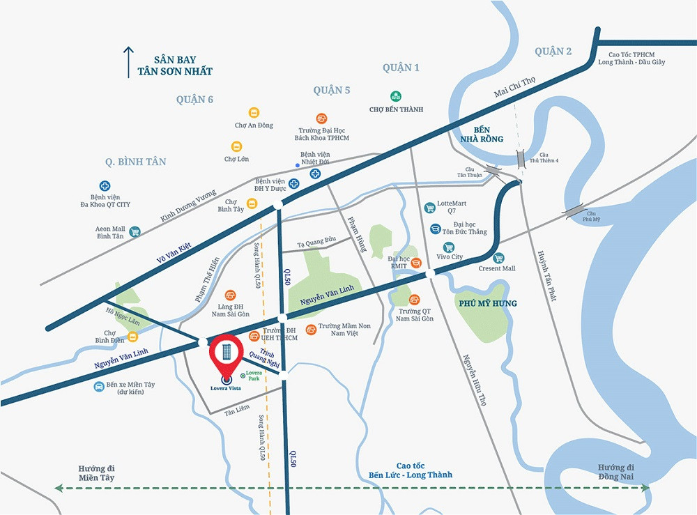 Lovera Vista được thừa hưởng hạ tầng phát triển đồng bộ của khu vực phía Nam TP.HCM. Nơi đây kết nối nhanh chóng với đại lộ Nguyễn Văn Linh và cao tốc Bến Lức – Long Thành, tạo điều kiện thuận lợi cho cư dân di chuyển.