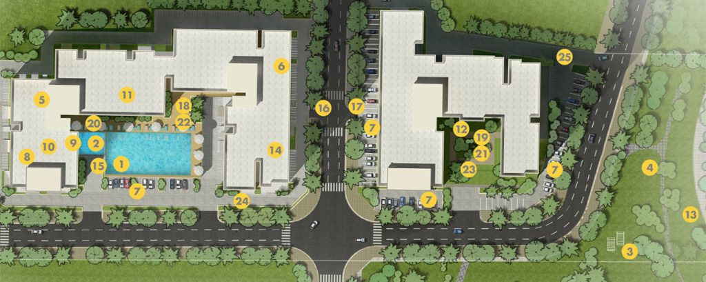 Dự án bao gồm hai tòa tháp cao 24 và 25 tầng, với các căn hộ được thiết kế thông minh, tối ưu không gian và ánh sáng tự nhiên.