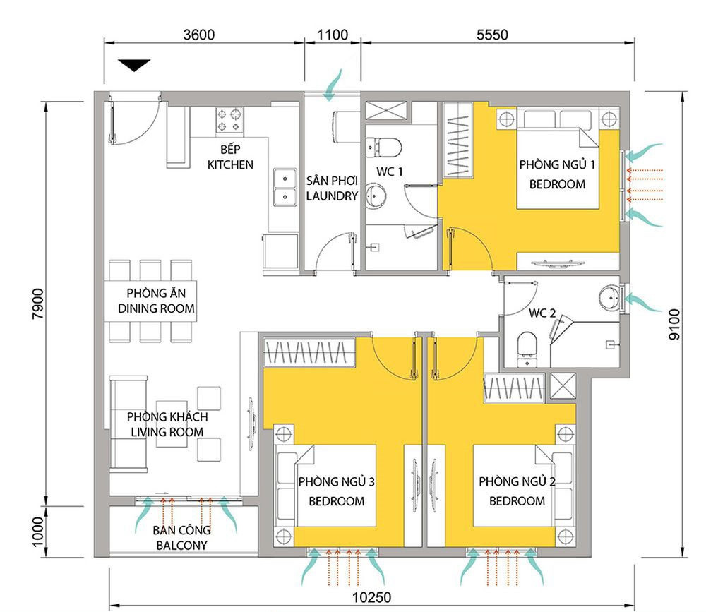 | Căn hộ 2PN | từ 58 – 73 m² | từ 2,7 – 3,15 tỷ | từ 11 – 13,94 triệu/tháng |