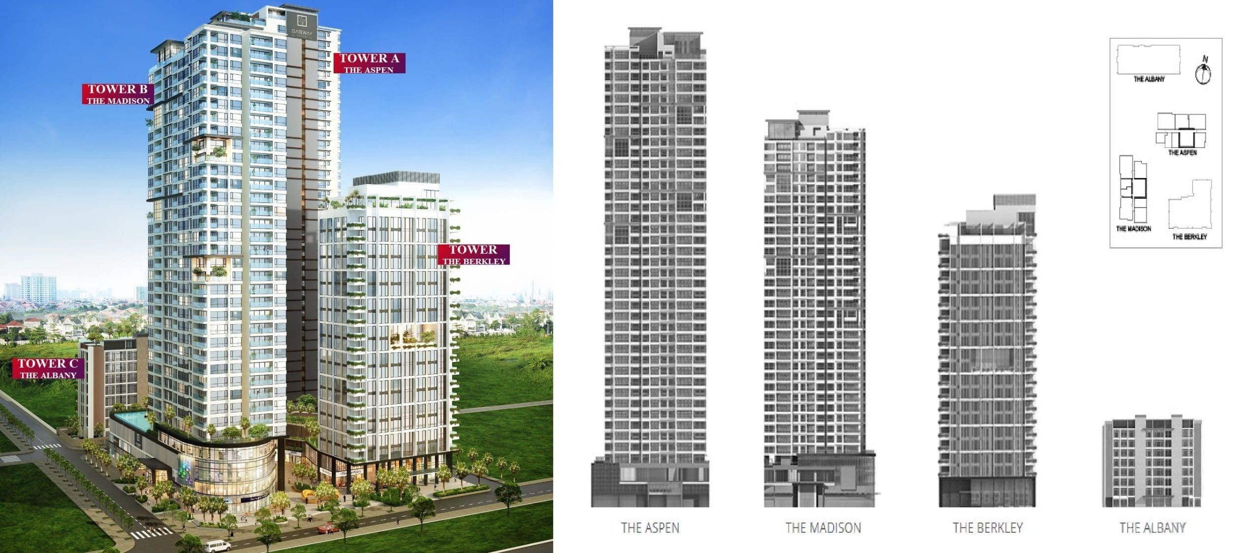 - Tháp Aspen: 42 tầng với 233 căn hộ.
