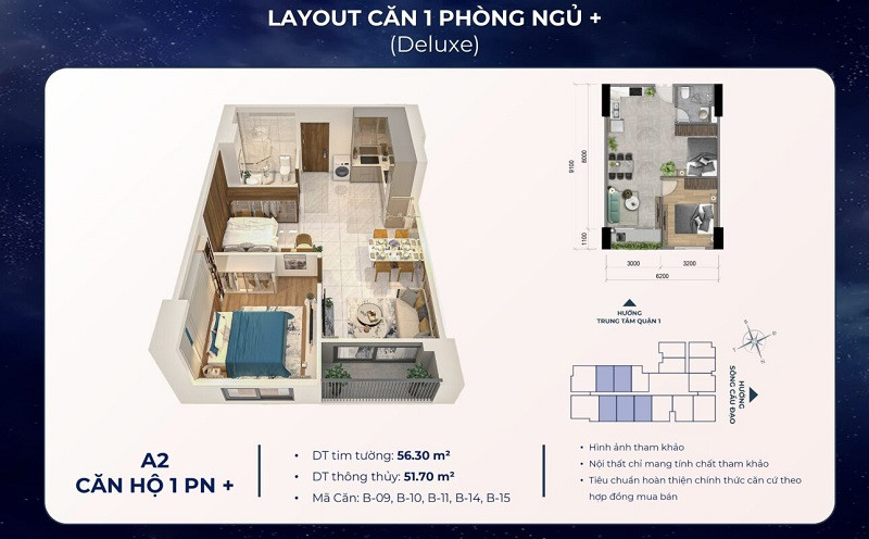 Layout căn hộ 1 phòng ngủ Deluxe