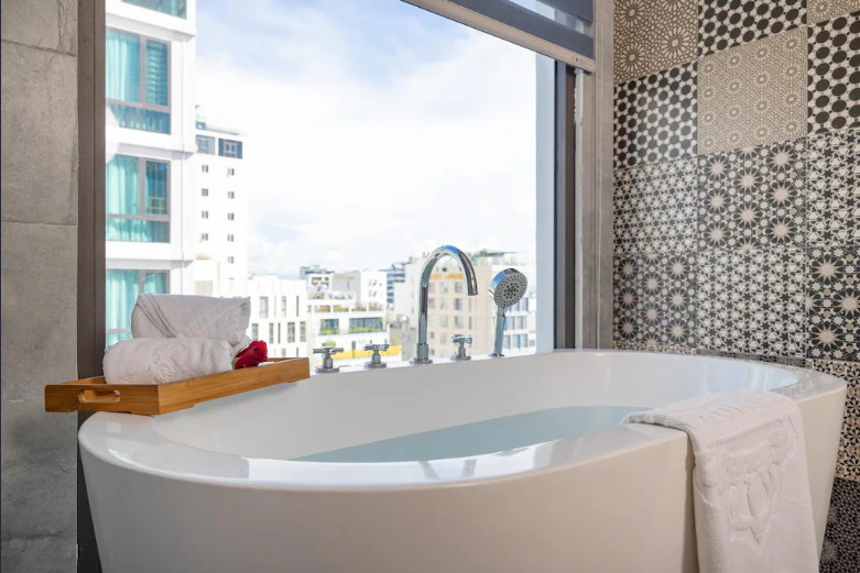 Một số phòng còn có ban công riêng hướng biển hoặc phố, mang lại không gian thêm thoáng đãng để bạn tận hưởng khí trời trong lành của thành phố biển. Không gian yên tĩnh và khả năng cách âm tốt khiến khách sạn trở thành lựa chọn lý tưởng cho cả gia đình, cặp đôi hay nhóm bạn và du khách công tác ngắn ngày.