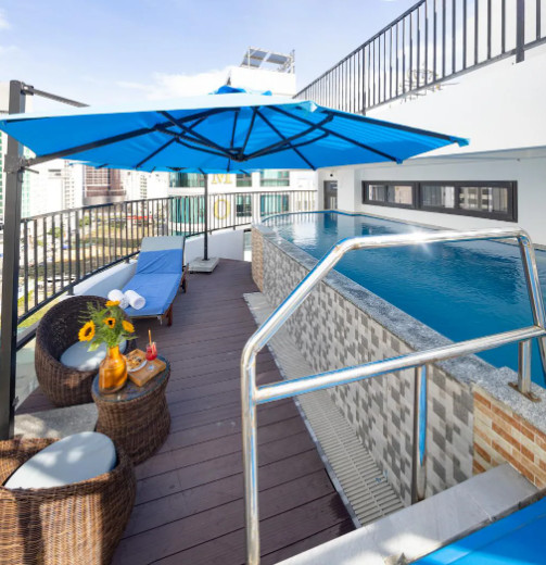 - Bể bơi ngoài trời trên tầng cao, nơi bạn vừa bơi lội vừa ngắm nhìn toàn cảnh thành phố và biể. Đây cũng là địa điểm lý tưởng để bạn chụp những bức ảnh lưu giữ kỷ niệm.