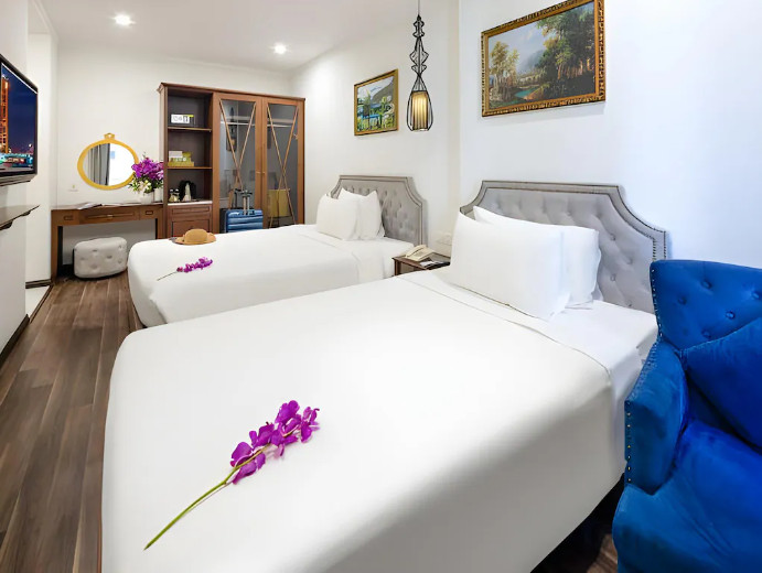 - TV màn hình phẳng, điều hòa hai chiều, minibar