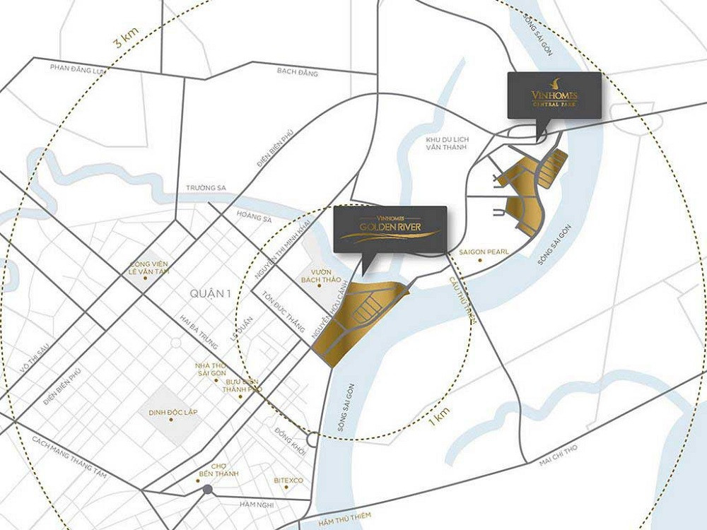 Vinhomes Golden River nằm tại vị trí chiến lược, dễ dàng kết nối với các tuyến đường chính của quận 1 và các quận lân cận. Điều này giúp cư dân thuận tiện di chuyển đến các khu vực trọng điểm trong thành phố.