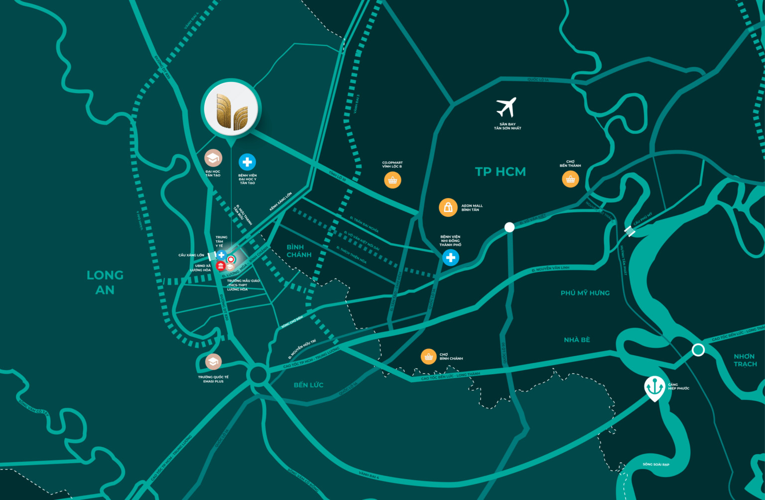LA Home không chỉ nằm ở vị trí đắc địa trên đất liền mà còn gần các tuyến đường thủy lớn. Cư dân có thể tận hưởng các dịch vụ giao thương và vận chuyển hàng hóa dễ dàng thông qua hệ thống cảng biển lớn như Cảng Long An, Cảng Hiệp Phước và Cảng Cát Lái. Điều này không chỉ tạo cơ hội cho việc giao thương mà còn giúp cư dân tiếp cận các cơ hội phát triển kinh tế tại khu vực.