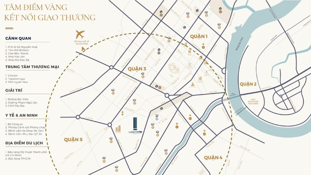 Với vị trí nằm giữa lòng Sài Gòn, dự án tận hưởng sự thuận tiện trong việc di chuyển. Chỉ mất từ 5 đến 20 phút để đến các địa điểm nổi tiếng như Nhà thờ Đức Bà, Nhà hát thành phố, phố đi bộ Nguyễn Huệ và nhiều cơ sở hạ tầng khác.