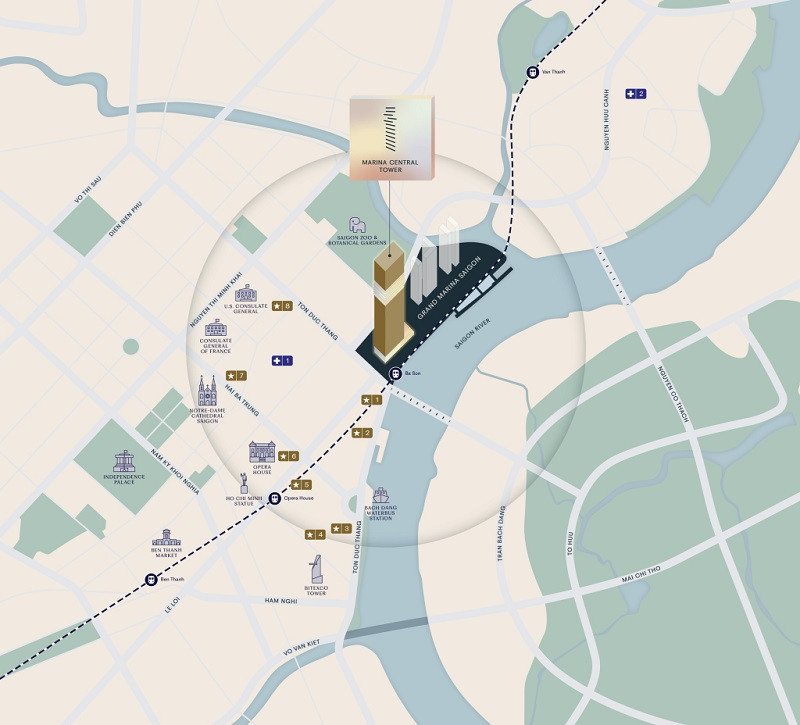 Marina Central Tower còn gần với ga ngầm Ba Son thuộc tuyến Metro số 1, tạo điều kiện thuận lợi cho cư dân và doanh nghiệp di chuyển với chi phí thấp. Địa điểm này càng thu hút nhiều doanh nghiệp trong và ngoài nước đến tìm kiếm cơ hội đầu tư.