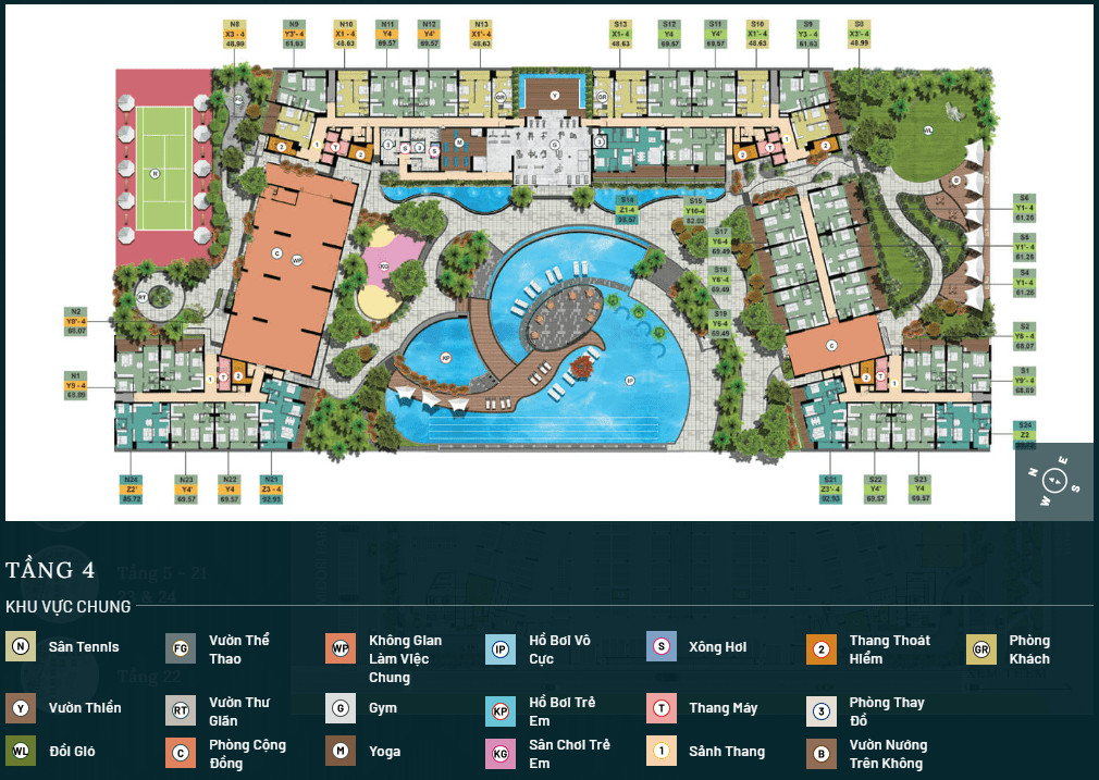 | Tiện ích | Vườn nướng BBQ, Khu vui chơi trẻ em, Trung tâm thương mại, Sky Louge và nhiều dịch vụ khác |