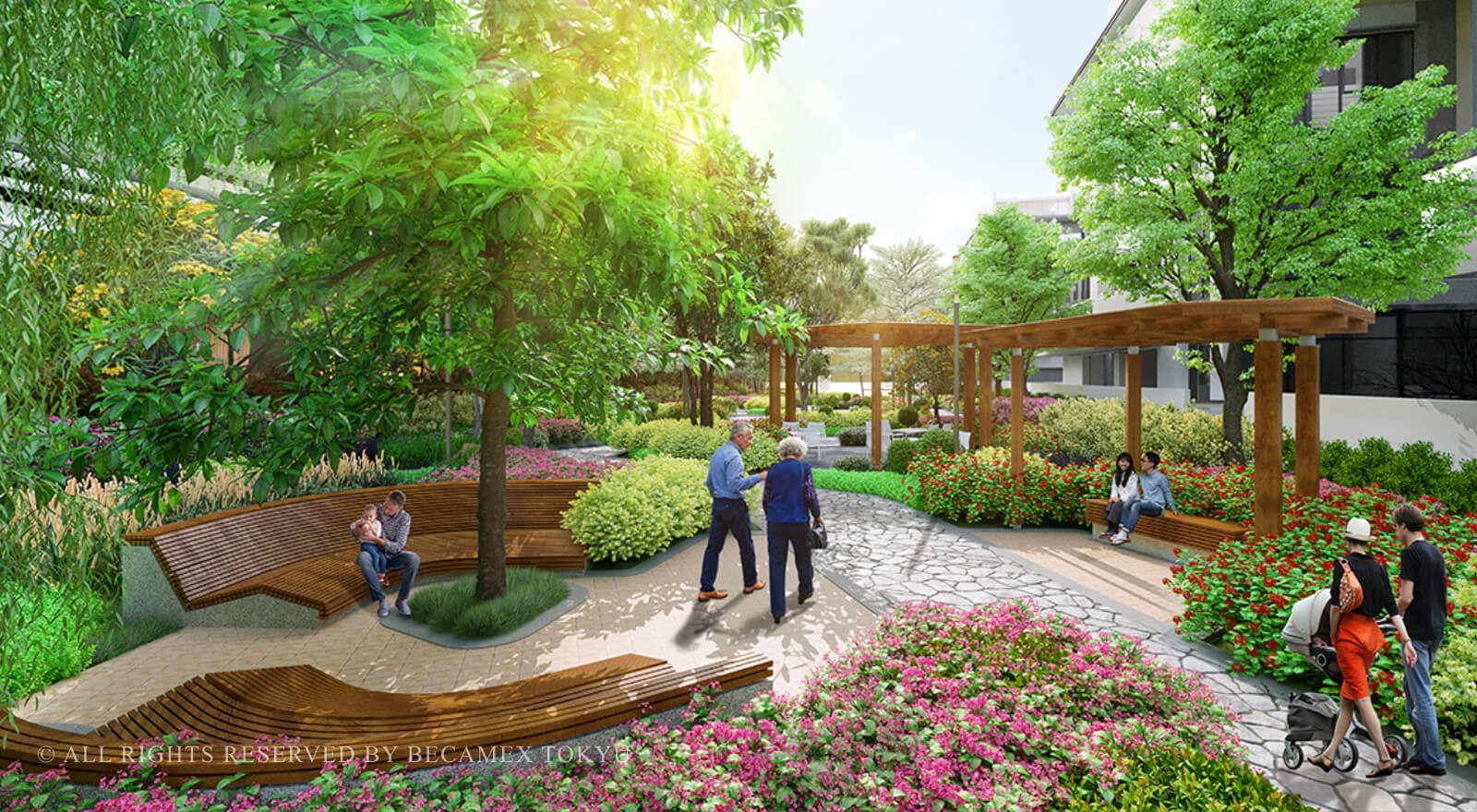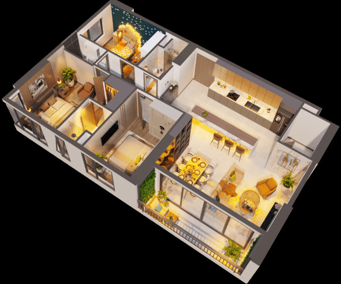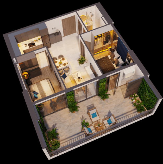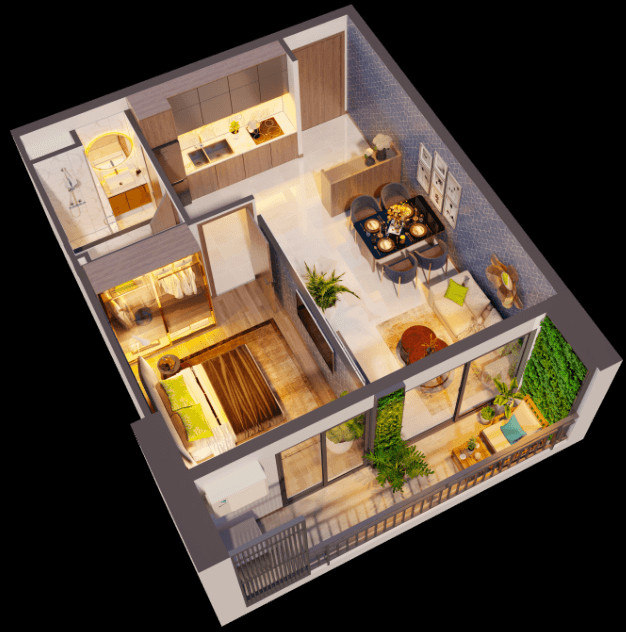 Một không gian sống xanh với cây cối và ánh sáng tự nhiên sẽ mang đến cho cư dân cảm giác thư giãn và hòa mình vào thiên nhiên, đảm bảo sự thông thoáng cho mỗi căn hộ.