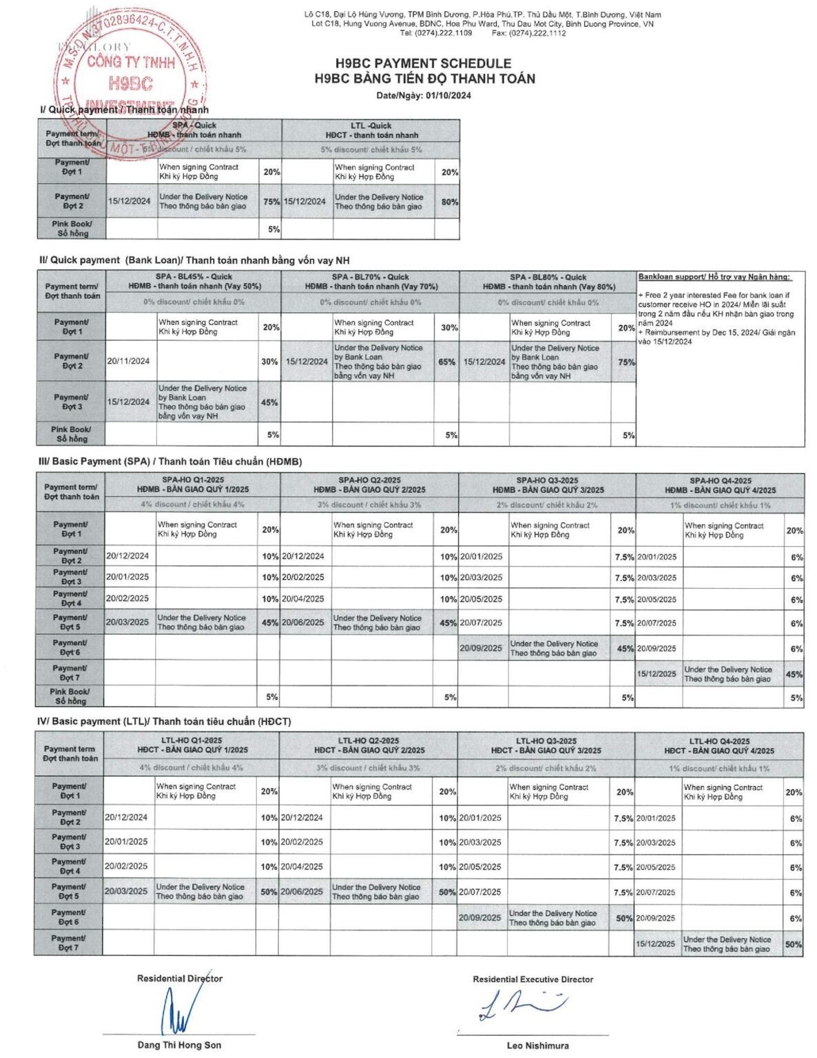 Giá bán và phương thức thanh toán Midori Park Bình Dương The Glory