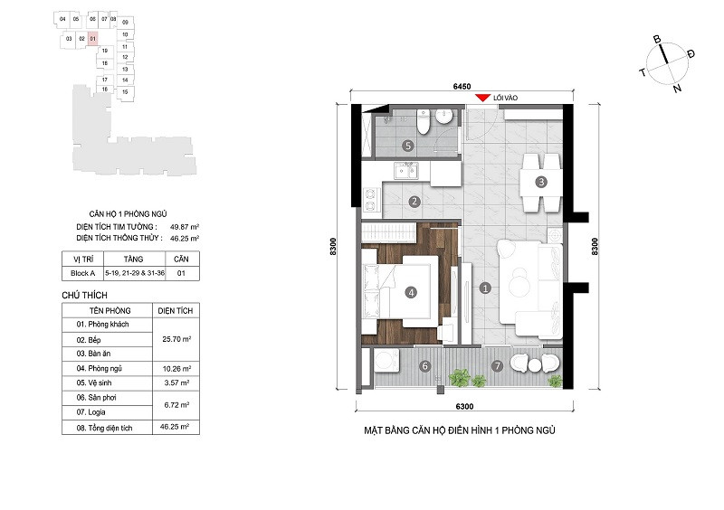 Layout căn hộ 1 phòng ngủ